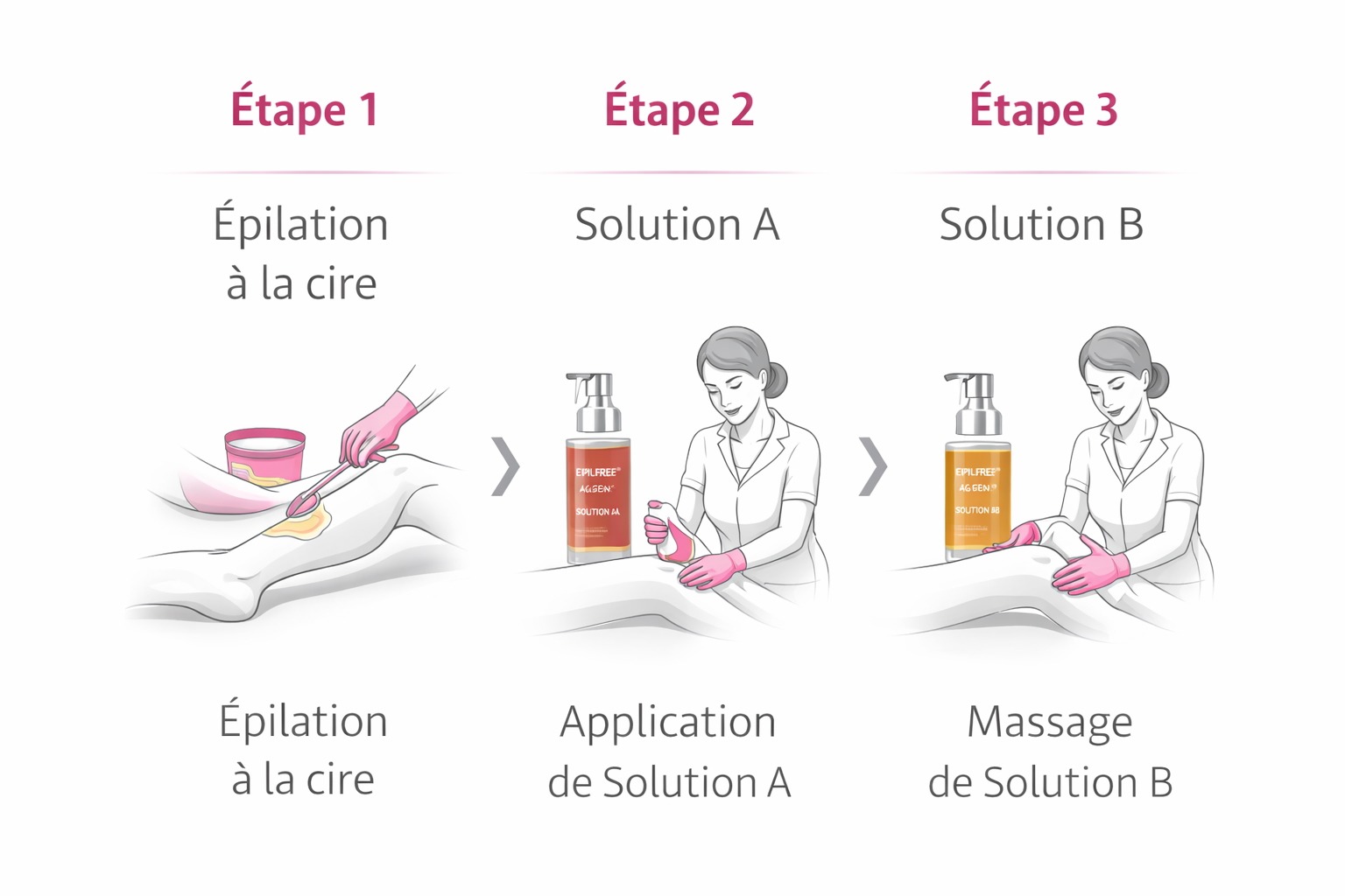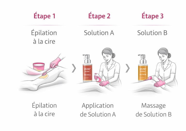 La solution s’intègre directement aux protocoles d’épilation existants, dès réception du kit.