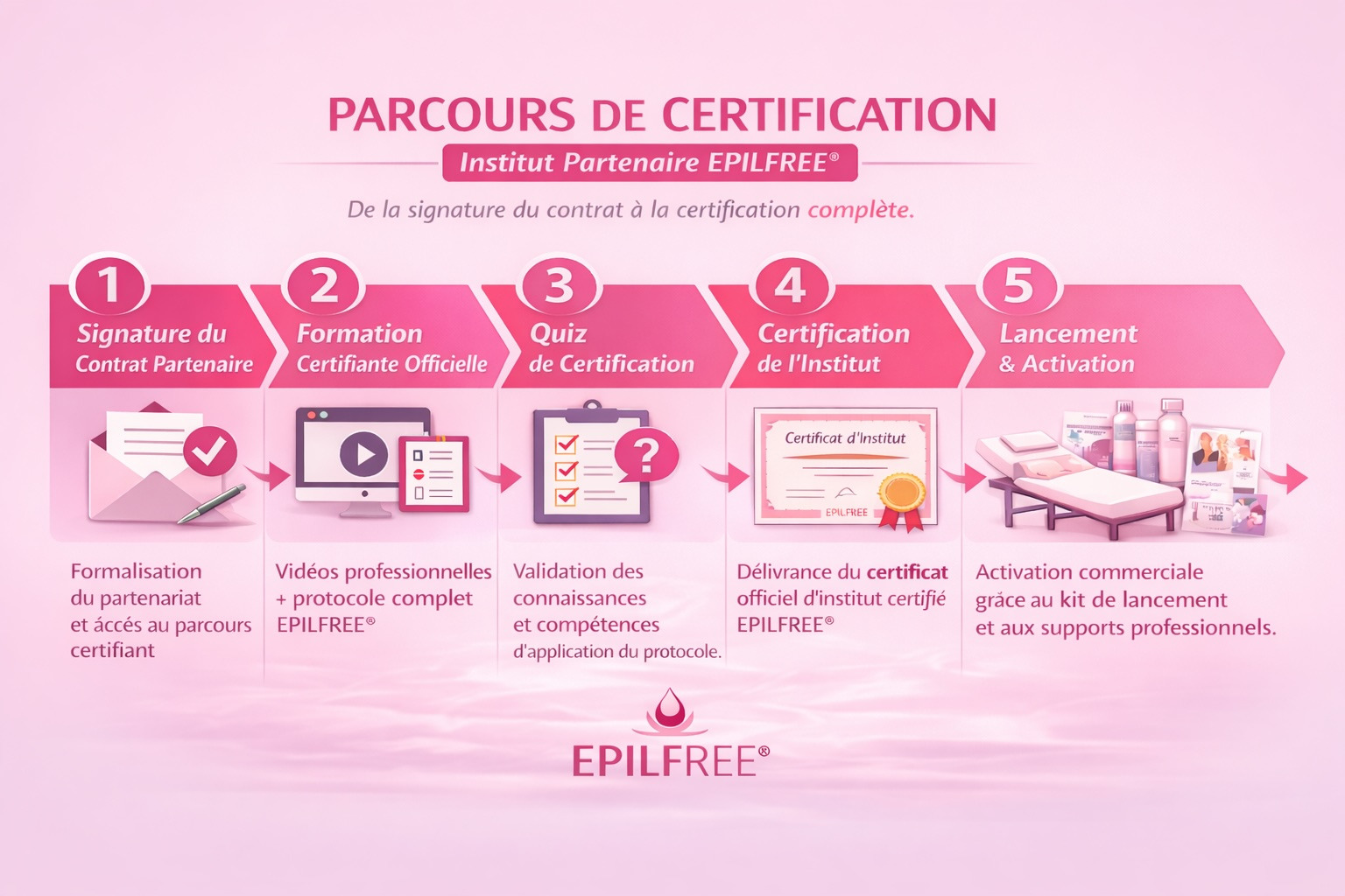 Chaque institut débute avec une certification EPILFREE® gratuite, simple et rapide, permettant de devenir Centre EPILFREE® certifié.